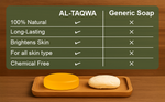 Experience radiant, healthy skin with HerbalGlow Turmeric Soap by AL-TAQWA. Infused with natural turmeric and herbal extracts, this soap gently brightens, nourishes, and protects your skin while providing a refreshing cleanse.